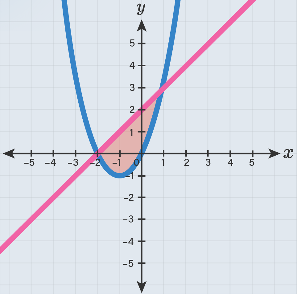 Daerah yang dibatasi oleh y=x+2 dan y=x2+2x dapat digambarkan sebagai berikut.