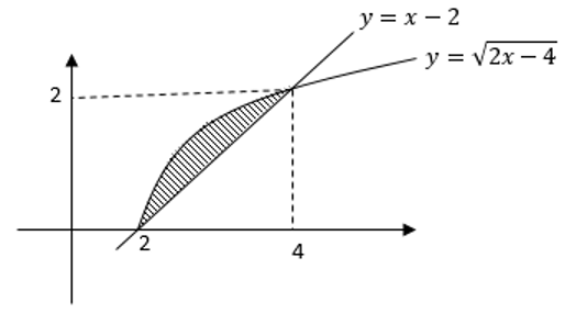 Daerah yang dibatasi oleh kurva dan garis diputar mengelilingi sumbu x sejauh 3600. Volume benda putar yang terjadi adalah …
