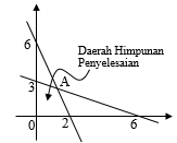 Daerah yang ditunjukkan oleh panah adalah gambar himpunan penyelesaian suatu program linear. Fungsi dibawah ini mencapai maksimum di titik A adalah...