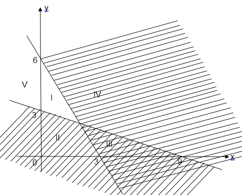 Daerah yang memenuhi penyelesaian dari sistem pertidaksamaan adalah ....