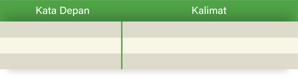 Daftarlah penggunaan kata depan pada teks di atas! Tulis dalam format tabel berlkut ini!