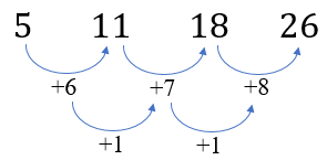 Sehingga pola ke-n merupakan hasil penjumlahan n suku pertama barisan aritmetika dengan suku pertama = 5 dan beda = 1.