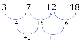 Sehingga pola ke-n merupakan hasil penjumlahan n suku pertama barisan aritmetika dengan suku pertama = 3 dan beda = 1.