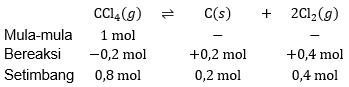 Dalam ruang bervolume 1 L sebanyak 1 mol gas terurai 20% menurut reaksi: