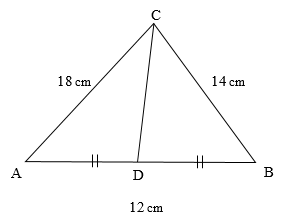 Dalam segitiga ABC, CD adalah garis berat. Panjang AB = 12 cm, BC = 14 cm dan AC = 18 cm, panjang CD adalah… cm