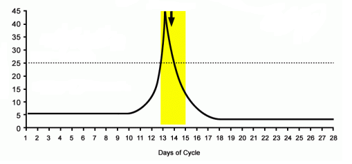 Dalam siklus menstruasi, grafik di bawah ini menggambarkan sekresi hormon yang dihasilkan oleh ...