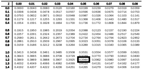 Dalam suatu lomba lari jarak jauh waktu rata-rata pelari dapat menyelesaikan lomba adalah 65 menit dengan simpangan baku 8 menit. Peluang seorang pelari menyelesaikan lomba tersebut kurang dari 55 menit adalah …