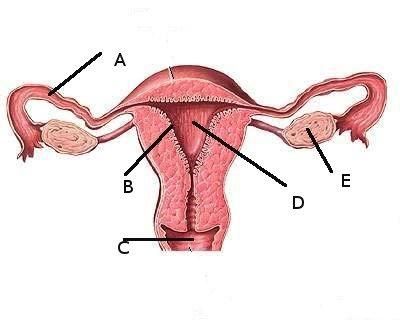 Darah yang keluar saat menstruasi berasal dari peluruhan endometrium. Pada gambar di bawah ini endometrium ditunjukkan oleh huruf….