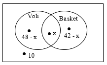 Dari 80 orang siswa yang di survey tentang kegemaran menonton acara olahraga di televisi, diperoleh 48 orang gemar menonton voli, 42 orang gemar menonton basket dan 10 tidak gemar acara tersebut. Banyak siswa yang hanya gemar menonton basket adalah…[UN 2010]