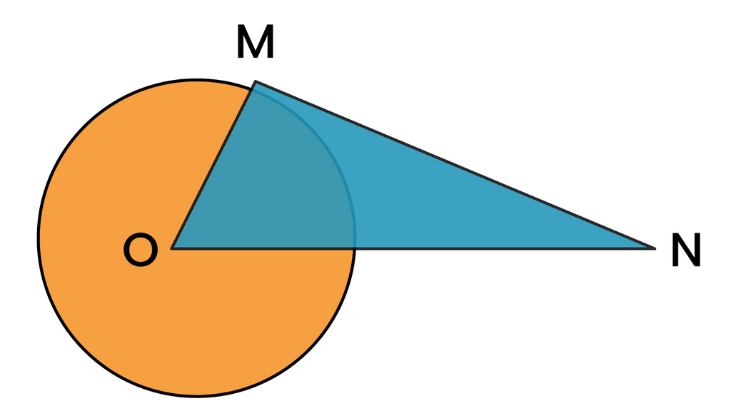 Dari gambar dibawah, O pusat lingkaran, MN garis singgung lingkaran, OM jari-jari lingkaran, ON jarak titik diluar lingkaran, maka pernyataan yang tepat adalah ...