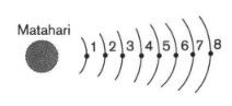 Dari gambar tata surya berikut, tuliskan nama planet sesuai urutan nomornya ....