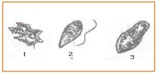Berdasarkan ciri-cirinya, Protozoa 1, 2 dan 3 secara berurutan termasuk dalam kelompok…..