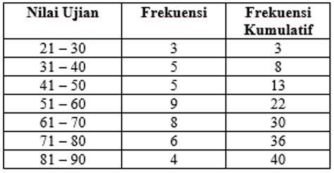 Dari hasil ujian 40 siswa diperoleh data berikut :