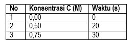 Dari reaksi: A + B C, diperoleh data sebagai berikut.