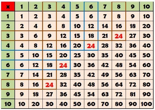 dari tabel perkalian, perkalian yang menghasilkan 24 adalah ...
