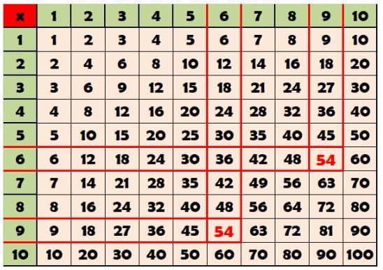 Dari tabel perkalian, perkalian yang menghasilkan 54 adalah ...