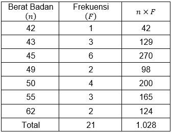 Dari data pada tabel, terlihat bahwa data dengan frekuensi terbanyak, yaitu