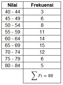 Data berikut merupakan hasil ujian matematika mahasiswa suatu Poltekkes: