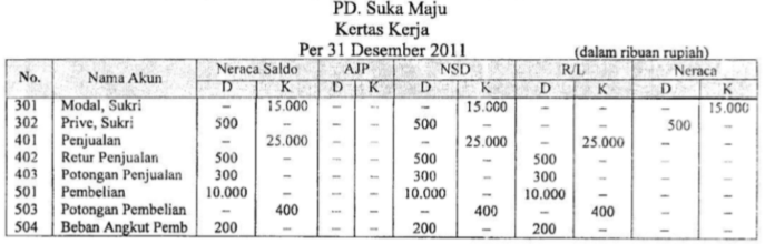 Data berikut sebagian kertas kerja dalam perusahaan dagang :