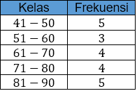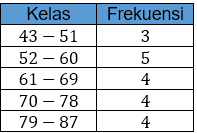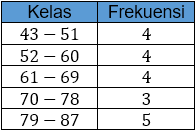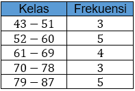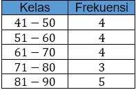 Tabel data distribusi frekuensi tersebut yang benar adalah …