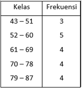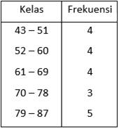 Tabel data distribusi frekuensi tersebut yang benar adalah …