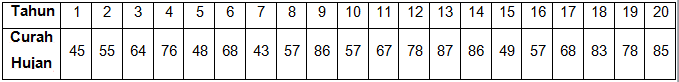 Data curah hujan selama 20 tahun pengamatan ditampilkan dalam tabel di bawah ini.