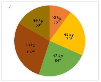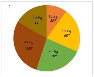 Jika ternyata ada kesalahan hitung berat badan yang seharusnya 44 menjadi 43 dan 42 seharusnya 41, maka diagram lingkaran yang benar seharusnya ….