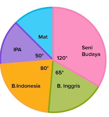Data di samping menunjukkan mata pelajaran yang disukai siswa di suatu sekolah. Jika banyak siswa yang suka Seni Budaya ada 480 orang. maka banyak siswa yang menyukai mata pelajaran matematika adalah ....