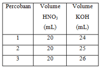 Data hasil titrasi larutan KOH 0,1 M dengan