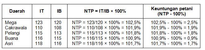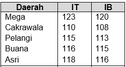 Data indeks harga yang diterima petani (IT) dan indeks harga yang dibayar petani (IB) di beberapa daerah berikut ini.
