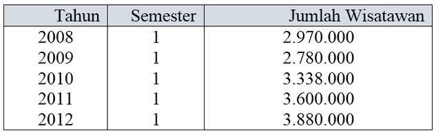 Data jumlah kunjungan wisatawan mancanegara yang berkunjung ke Indonesia: