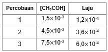 Data laju penguraian asetildehida disajikan pada tabel berikut.