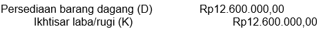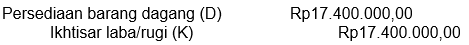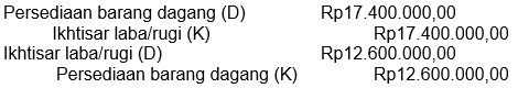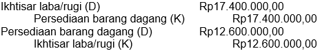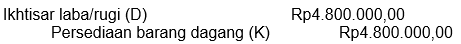 Data neraca saldo PD Armanda periode Agustus 2019 mencatat persediaan barang dagang awal sebesar Rp17.400.000,00. Setelah dilakukan pengecekan fisik pada 31 Agustus 2019, persediaan barang dagang yang tersisa adalah sebesar Rp12.600.000,00. Jurnal penyesuaian yang benar dengan pendekatan ikhtisar laba/rugi terkait data tersebut adalah ….