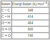 Data nilai energi ikatan rata-rata diketahui sebagai berikut.