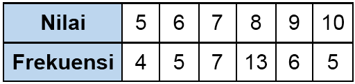Data nilai ulangan matematika siswa kelas IX C disajikan pada tabel berikut: