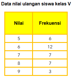 Data nilai ulangan siswa kelas V adalah sebagai berikut.