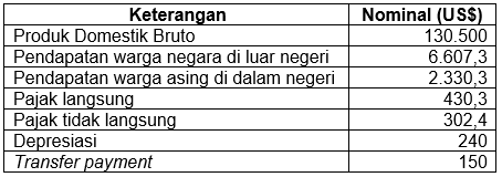 Data pendapatan nasional negara Gladiol pada 2019 (dalam juta) sebagai berikut.