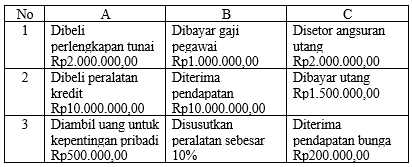 Berdasarkan data di atas, transaksi yang memengaruhi besarnya modal pada persamaan dasar akuntansi adalah …