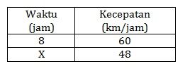 Dengan menggunakan mobil, jarak dua kota dapat ditempuh dalam waktu dengan kecepatan rata-rata . Jika jarak tersebut ditempuh dengan kecepatan rata-rata , maka waktu yang diperlukan adalah ....