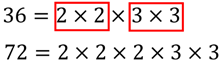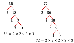 Dengan menggunakan pohon faktor, FPB dari 36 dan 72 adalah….