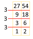 Dengan metode tabel, FPB dari 27 dan 54 adalah….