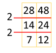 Dengan metode tabel, FPB dari 28 dan 48 adalah…