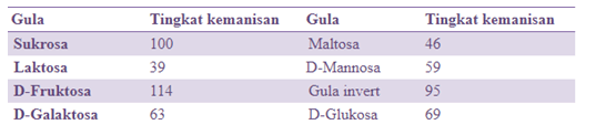 Derajat kemanisan gula secara berurutan mulai dari yang paling manis adalah…