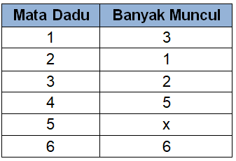 Desi melambungkan sebuah dadu sebanyak 18 kali. Hasilnya dicatat dalam tabel berikut.