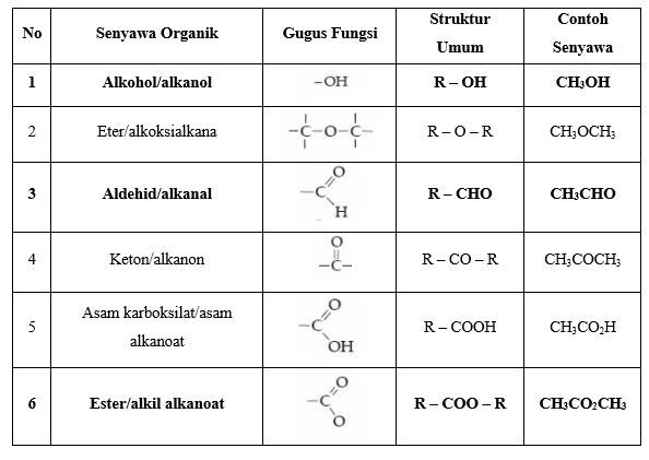 Di antara kelompok senyawa berikut ini yang termasuk alkohol, ester, dan aldehid berturut-turut adalah….