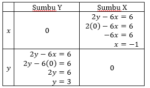 dengan menghubungkan titik potongnya pada sumbu X dan sumbu Y.