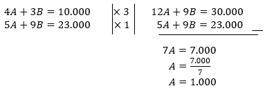 Di arena bermain anak-anak, Inas membeli koin seharga Rp 10.000,00 untuk digunakan bermain 4 kali permainan A dan 3 kali permainan B, sedangkan adiknya Egam membeli koin seharga Rp23.000,00 yang digunakan untuk bermain 5 kali permainan A dan 9 kali permainan B. Hanif telah bermain 6 kali permainan A dan 6 kali permainan B. Besarnya biaya yang telah dikeluarkan Hanif adalah...