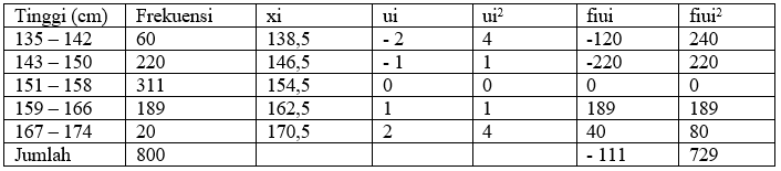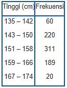Di bawah ini adalah data tinggi badan dari 800 SMA Negeri 1 Ambarawa.