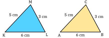 Di bawah ini adalah dua segitiga yang memiliki ukuran panjang sisi yang sama di ketiga sisinya.