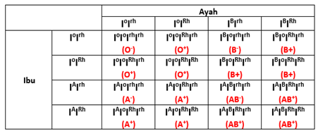 Dari kelima anak tersebut, tiga diantaranya sudah menikah. Individu 1 menikah dengan perempuan bergolongan darah B+ dan menghasilkan keturunan dengan golongan darah B- dan O+. Individu 2 menikah dengan laki-laki bergolongan darah A+ dan menghasilkan keturunan bergolongan darah O-. Sementara individu 3 menikah dengan perempuan bergolongan darah A- dan melahirkan anak laki-laki bergolongan darah A+. Berdasarkan pernyataan di atas maka pernyataan yang benar adalah…